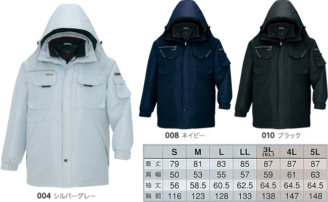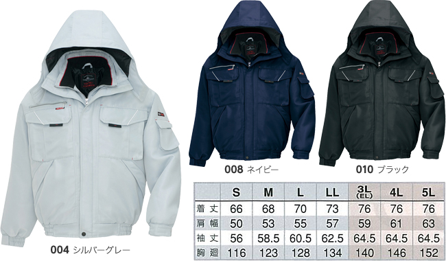 ● 氏名片布付 ● ヘルメット対応大型フード・取り外し可能 ● フード取り外し可能 ● マジックテープ/(ポケットフラップ・前立て)● 反射パイピング ● 反射テープ付 ● 内ポケット付 ●衿/二重前立て ● 袖口/ゴム・マジックテープ ● ペン差し付(左袖)